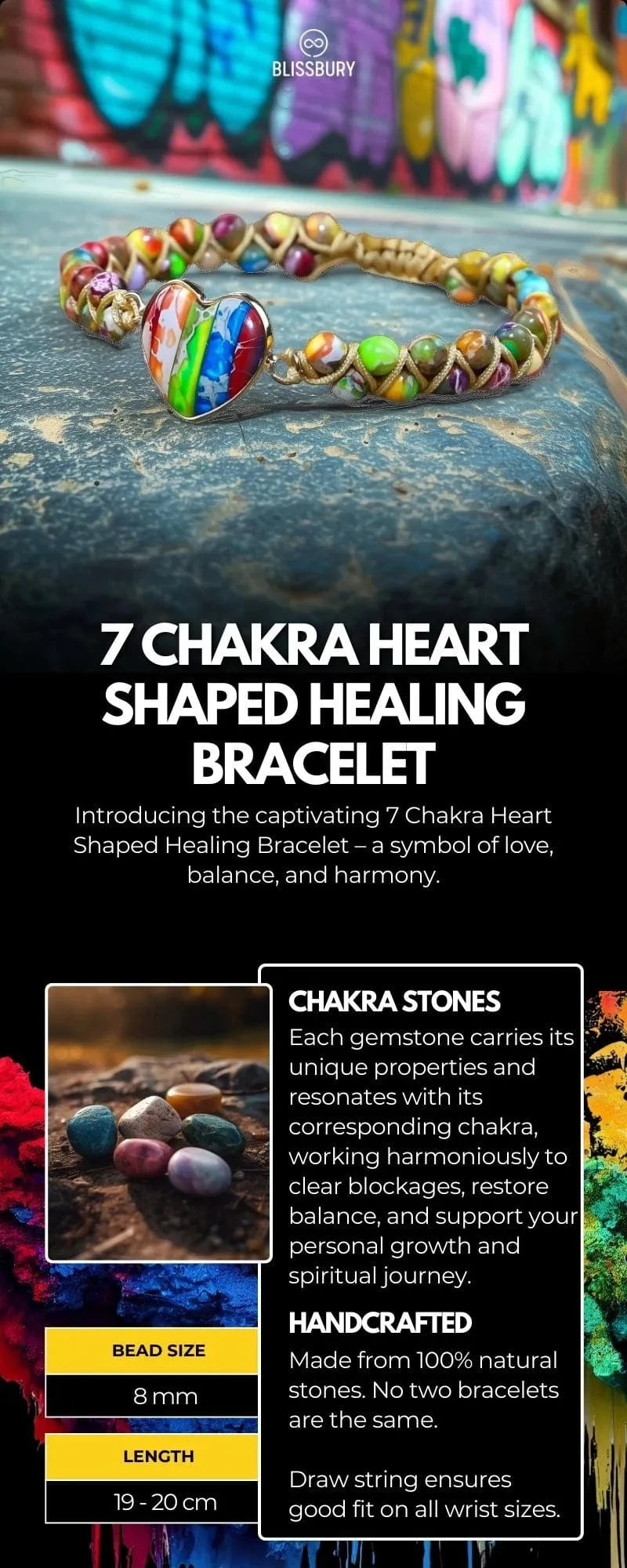 The 7 Chakra Heart Shaped Healing Bracelet is not only visually stunning but also possesses powerful properties known to benefit the wearer.