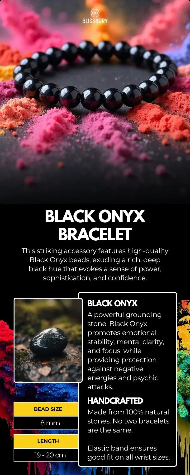 Introducing the alluring Black Onyx Bracelet – a symbol of strength, protection, and elegance.
