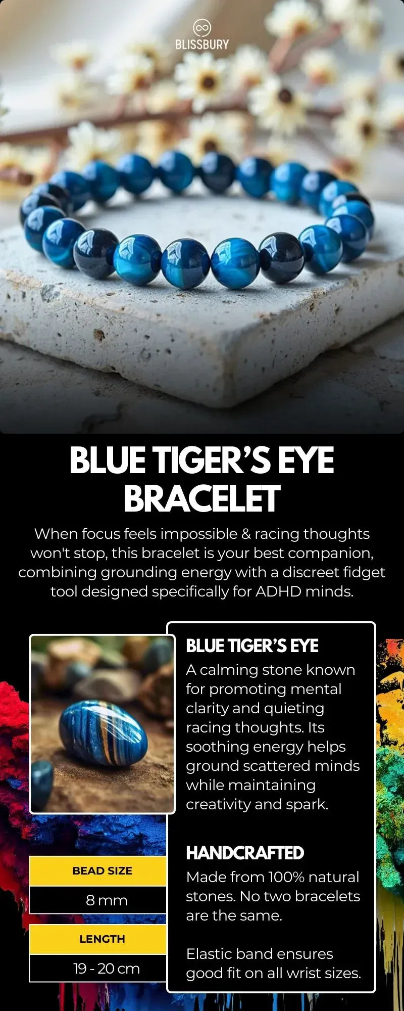 The Blue Tiger's Eye Bracelet is designed for moments when focus feels impossible.