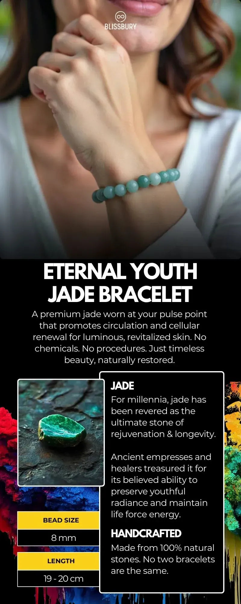 Each morning, as you fasten the Eternal Youth Jade Bracelet around your wrist, you're activating your body's own anti-aging mechanisms. The cool jade against your skin is a signal. Renew. Restore. Regenerate.