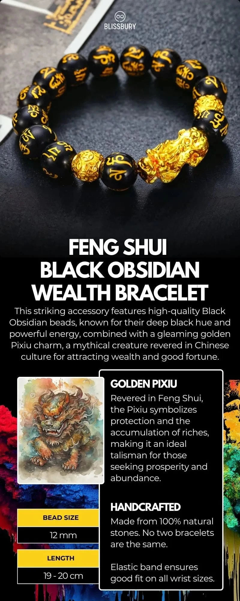 This simple positioning, practiced for thousands of years, maximizes the bracelet's ability to attract prosperity while the Black Obsidian shields you from any negative energy that might block your success.