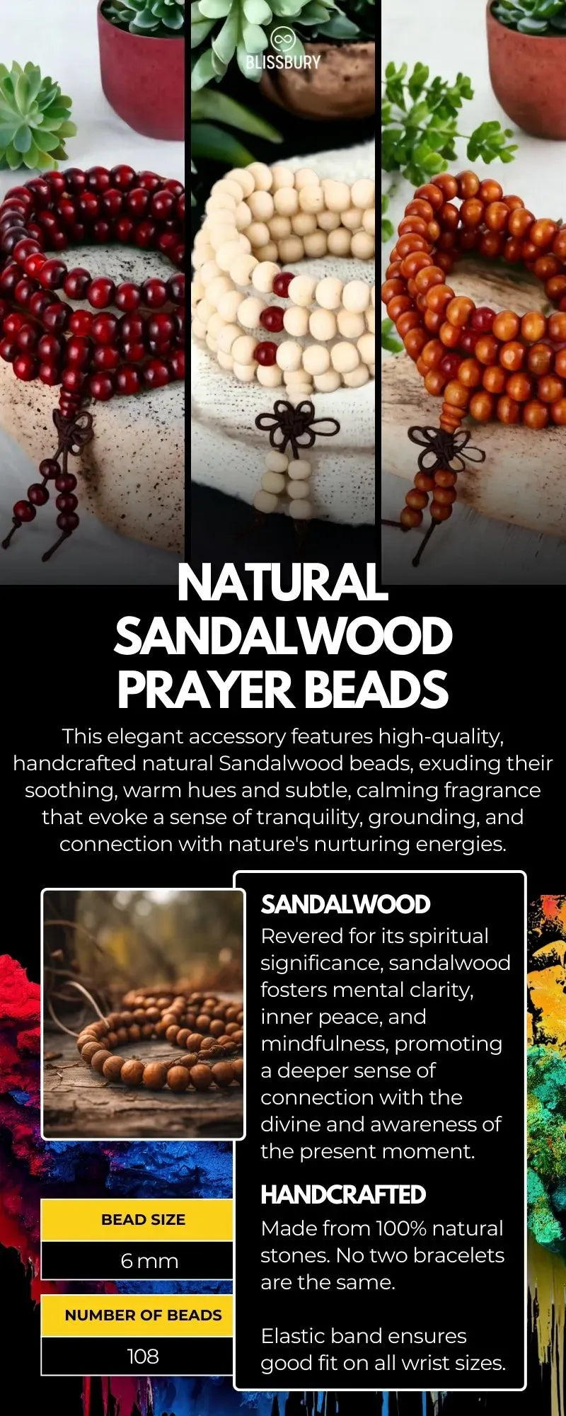 Natural Sandalwood Prayer Beads - Peace, Mindfulness, Spirituality