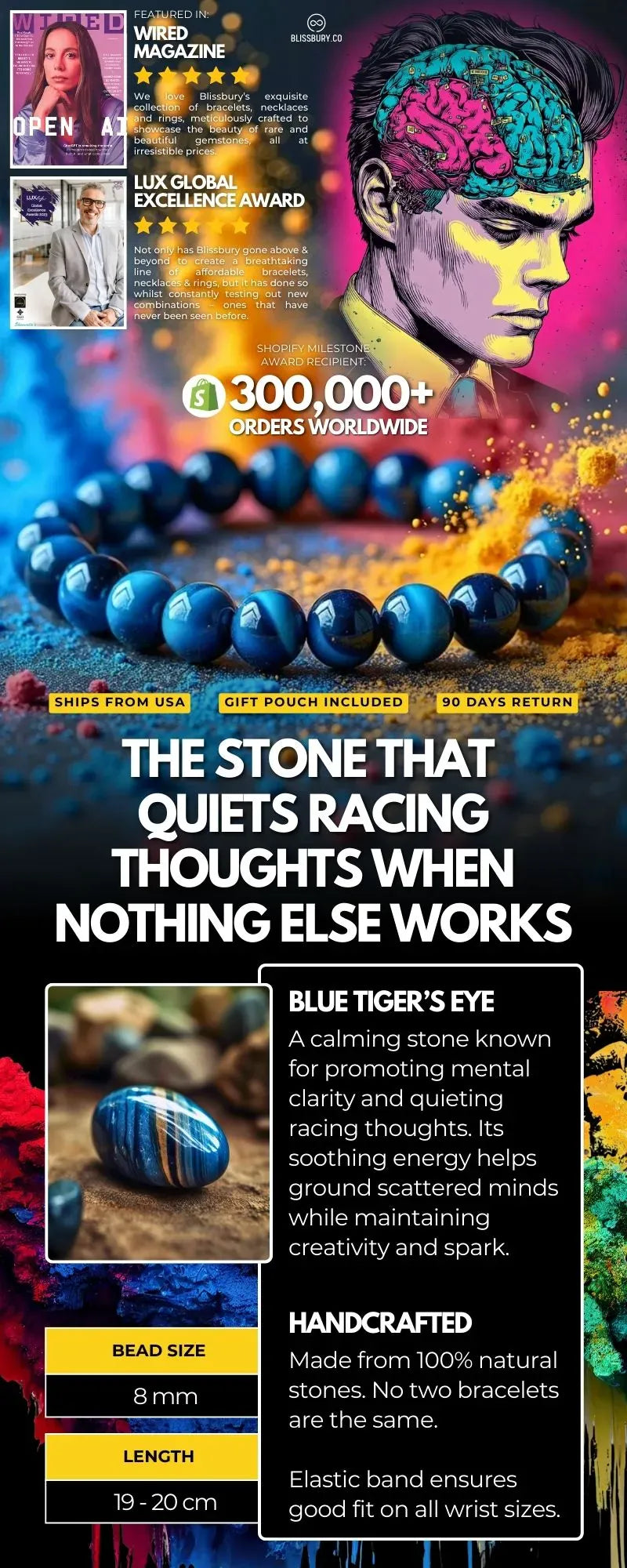 The Nebula Tiger's Eye Bracelet is meticulously handcrafted, ensuring exceptional quality and attention to detail.