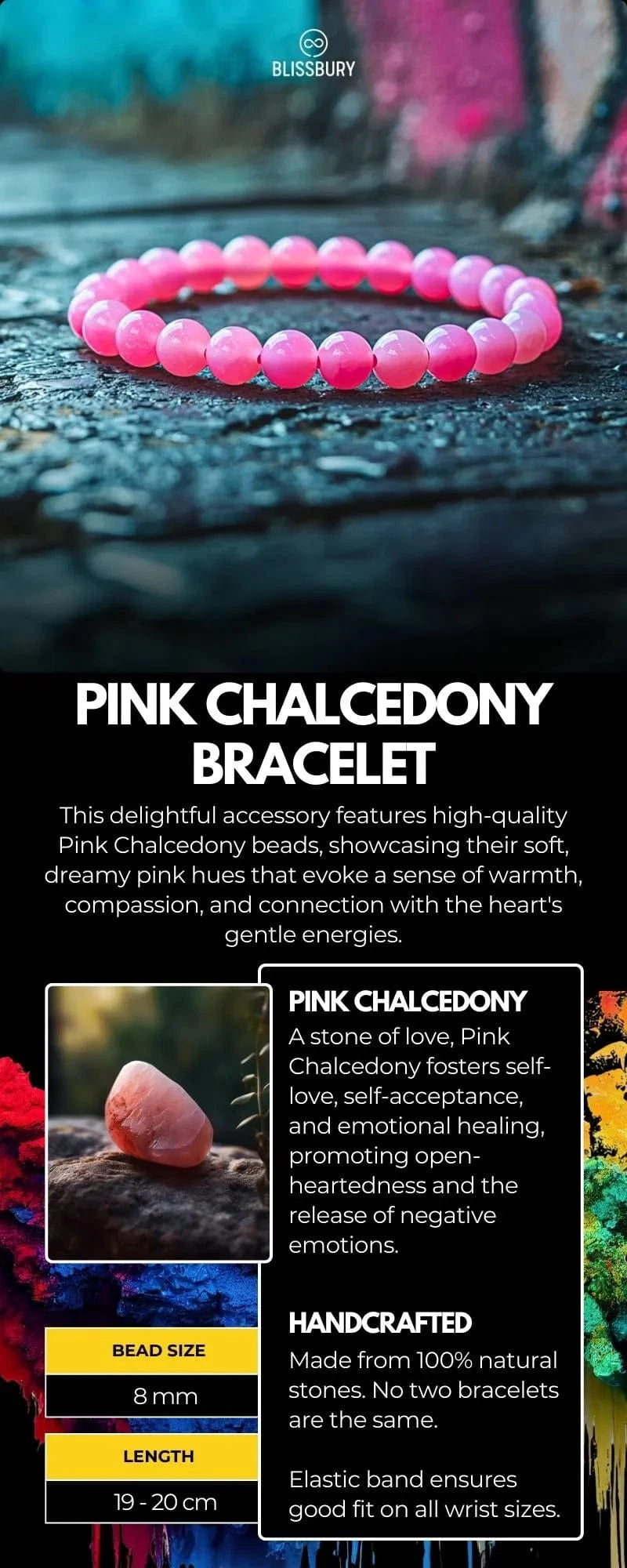 Embrace the tender allure and heartwarming energy of the Pink Chalcedony Bracelet, and experience the enhanced love, emotional balance, and inner peace it brings to your life.
