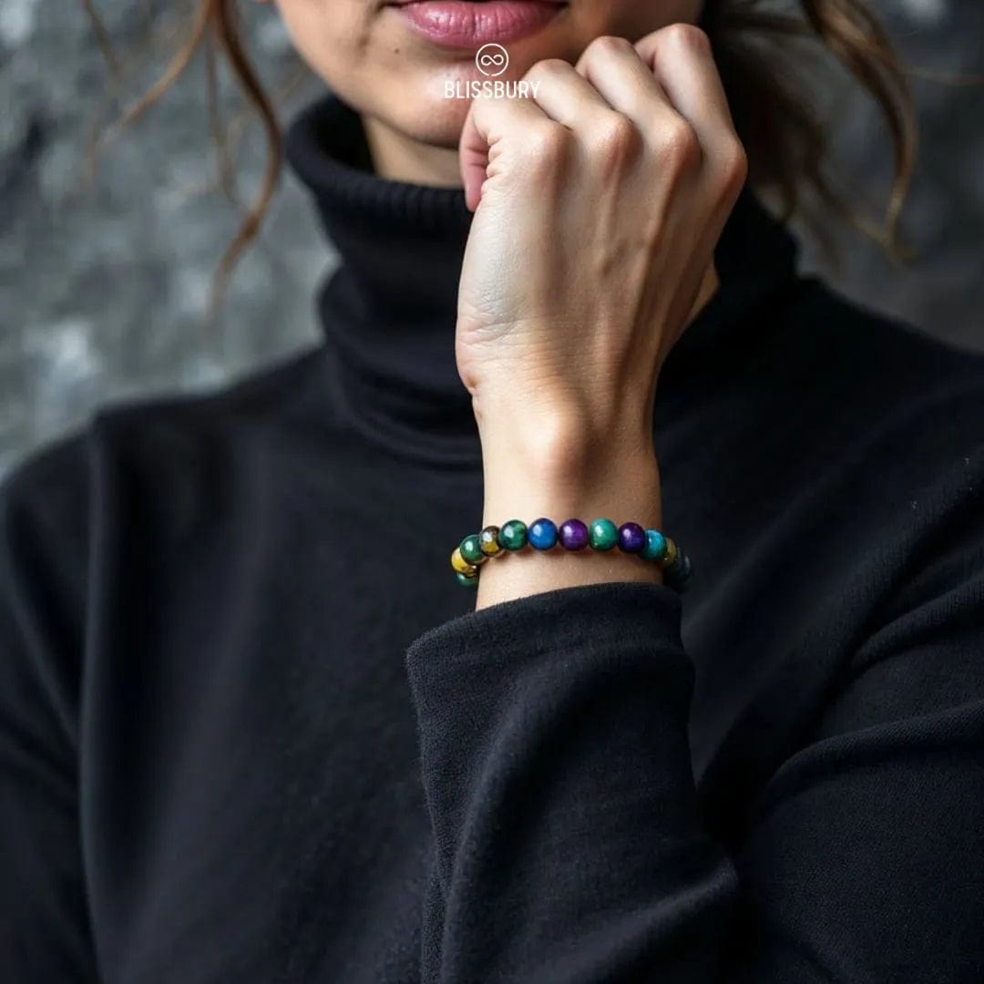 Whether you're dressing up for a night out or adding a touch of elegance to your everyday look, the Rainbow Aura Quartz Bracelet is the perfect choice.