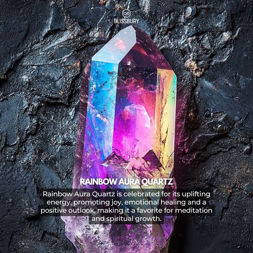 Rainbow Aura Quartz is celebrated for its uplifting energy, promoting joy, emotional healing, and a positive outlook, making it a favorite for meditation and spiritual growth.
