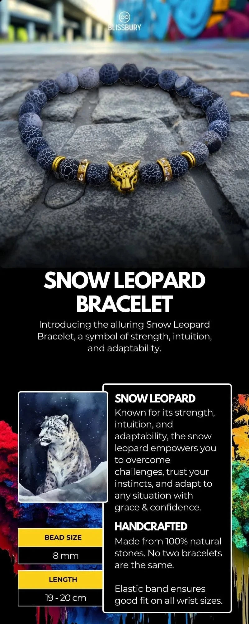 Embrace the mysterious allure and powerful energy of the Snow Leopard Bracelet, and experience the enhanced strength, intuition, and adaptability it brings to your life.