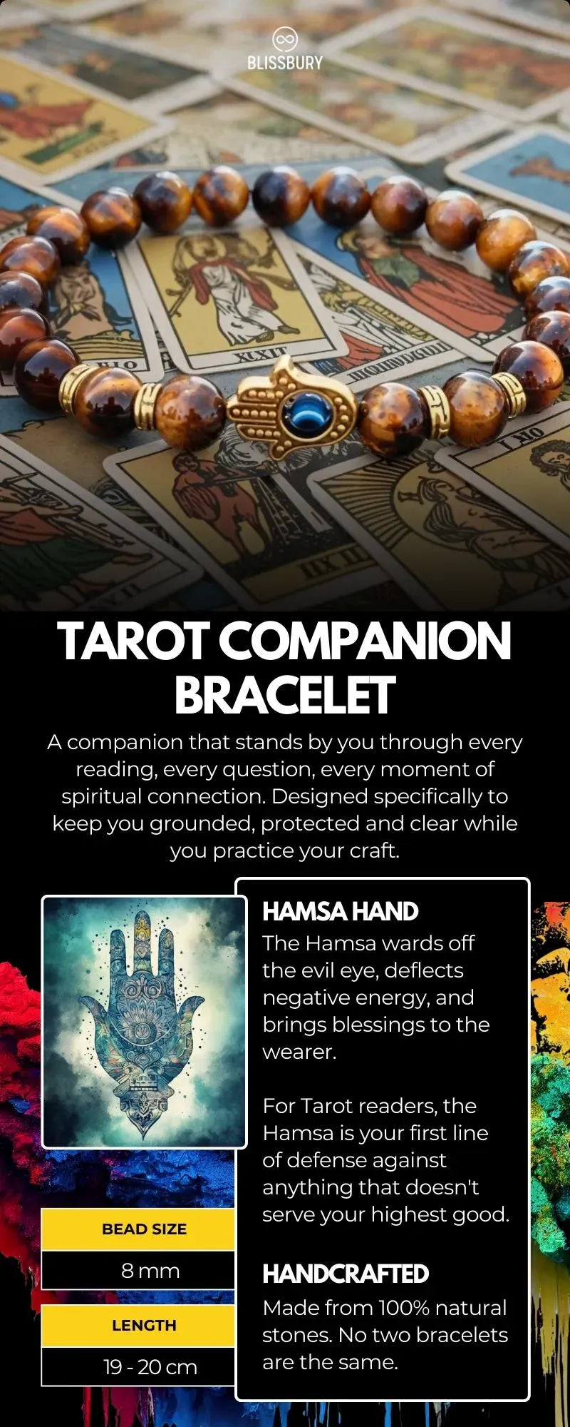 That's why experienced readers never work unprotected. The Tarot Companion Bracelet was designed specifically for this—to keep you grounded, protected, and clear while you practice your craft.