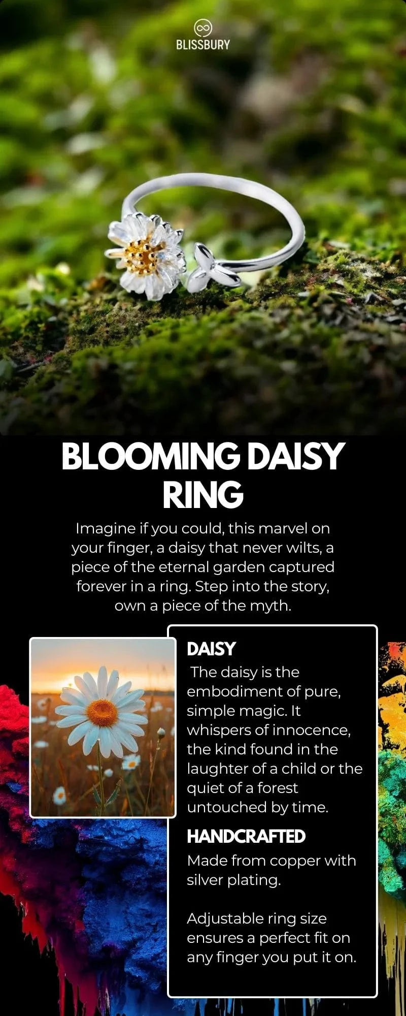 The Blooming Daisy Ring is a portal to a story, a piece of magic from the garden of the gods.